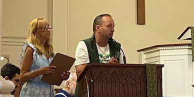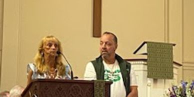 After a great presentation to a fabulous and welcoming audience Linda and Steve answer questions from the congregation.